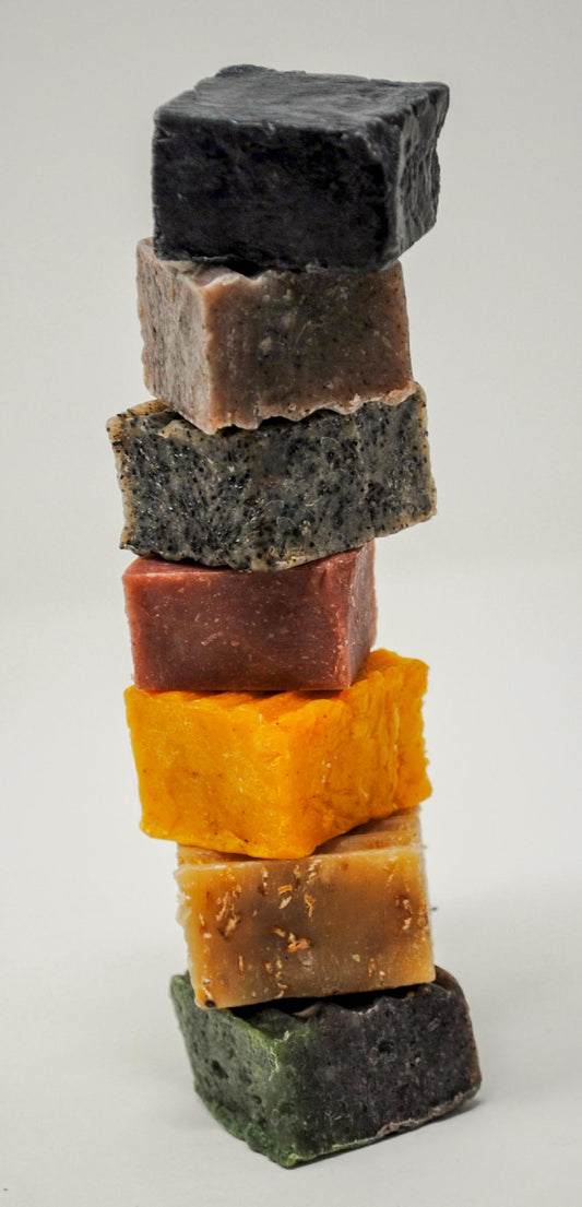 Indulge in a luxurious and nourishing bath experience with our collection of handcrafted soaps. Made with all-natural ingredients, including essential oils and natural colorants, each bar is carefully created using the hot process method in small batches to ensure quality. Our unique blend of natural oils and butters provides a rich and creamy lather that deeply nourishes and hydrates your skin. Try our bars today and experience the pure, natural goodness of our handcrafted soaps.